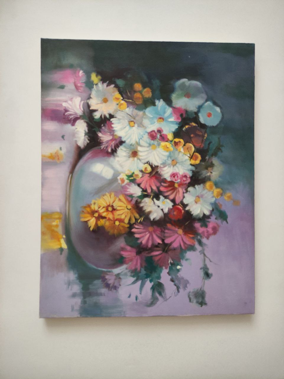 تابلو نقاشی گلدان گل روی بوم؛ تکنیک رنگ روغن، سایز